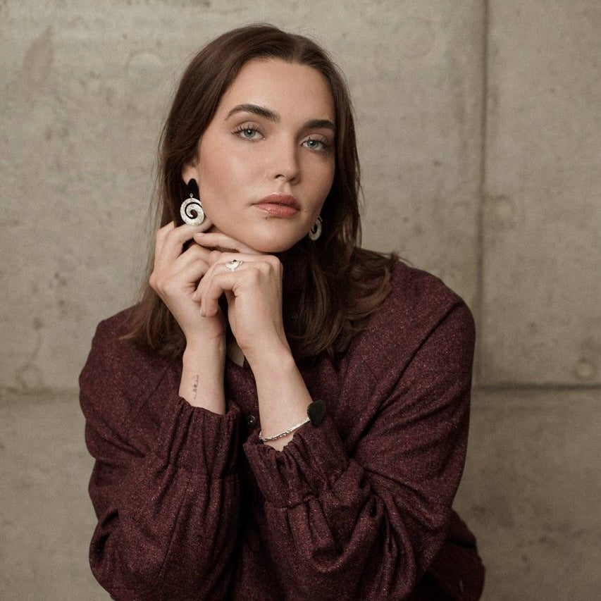 Woman in a black dress with stylish handmade jewellery standing by the water