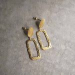These earrings capture the beauty of weathered forms and seaside treasures. The hammered rectangle evokes natural textures, while the hanging bog stone rests like a pebble washed ashore - minimal, tactile, luxurious.
