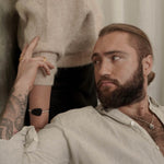 The Apex Pendant features two geometric triangles forming a double pyramid, freely holding a small bog stone at its core. Suspended on a fine chain, this necklace embodies refined balance, modern elegance, and tactile natural beauty - a statement of understated luxury.