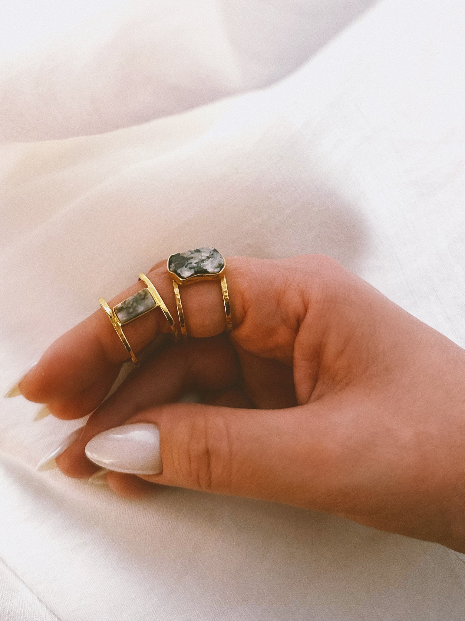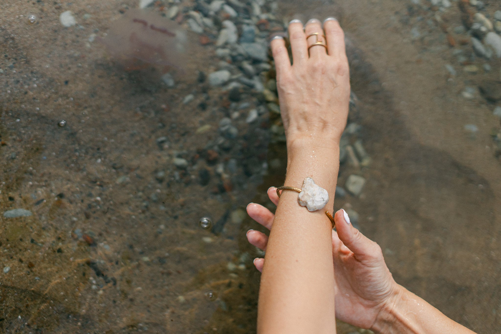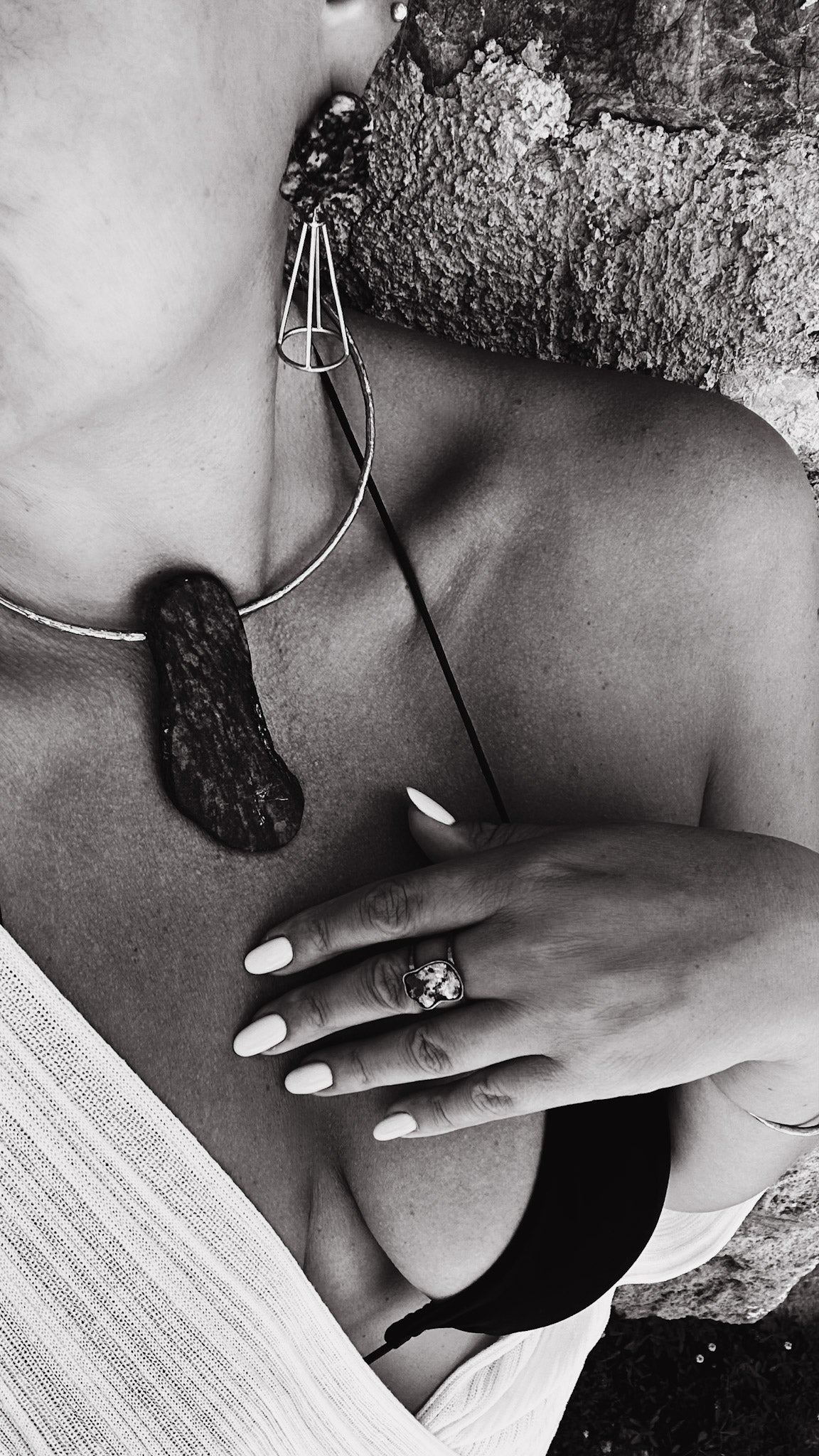 Our founder and head designer personally handpicks stones from her home beach on the Estonian island Saaremaa. Each unique bog stone, adorned with small sparkling crystals, is distinct and entirely individual, exhibiting variations in tone, pattern, and finish. We embrace these differences as they enhance the inherent beauty of each stone.